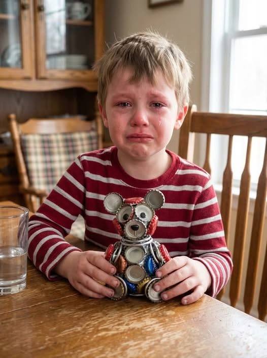 - Environmental message: Using recycled materials like bottle caps can hint at upcycling, sustainability, and care for the environment, though the child’s emotions make it more personal and human.