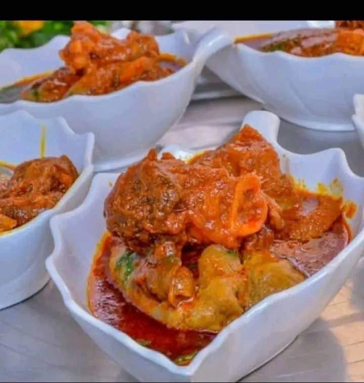 - Mild, creamy, and often spiced with palm oil, locust beans (iru), and seasoning.
