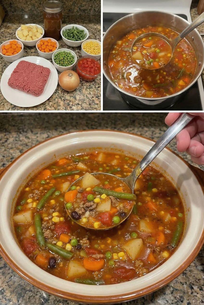 Beef soup is a hearty, savory dish featuring tender chunks of beef simmered with vegetables in a flavorful broth. It’s perfect for colder days or anytime you want a filling, comforting meal. 🥩🥕🍲