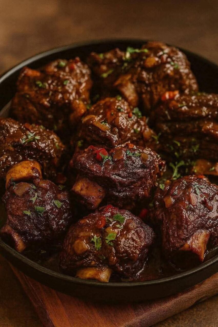 Braised oxtail is a rich, hearty dish where oxtail is slowly cooked until the meat is tender, falling off the bone, and infused with deep, savory flavors. Perfect for a comforting dinner!