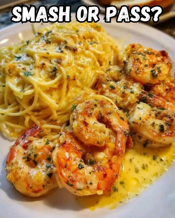 Garlic butter shrimp with creamy spaghetti garlic cheese sauce