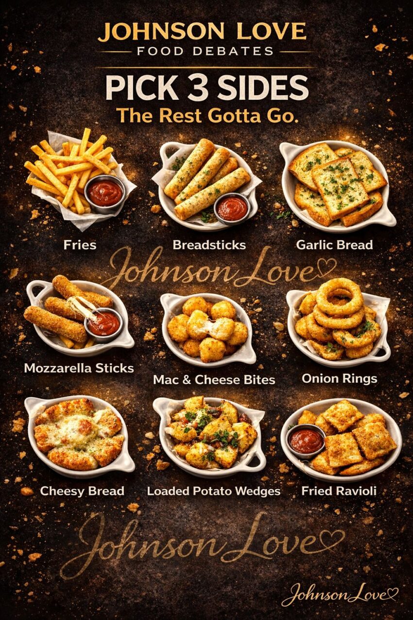 Ah, looks like you’re talking about a food debate scenario where you have to pick 3 sides from a list, and everything else “gotta go.” Let’s break it down carefully. From your list, the options are: