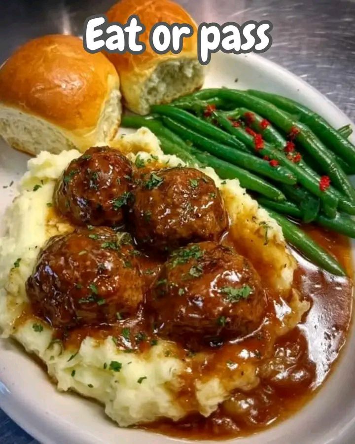 Meatballs and gravy is a classic comfort food dish that’s hearty, savory, and perfect served over mashed potatoes, rice, or egg noodles. The meatballs are tender, and the gravy is rich and flavorful—sometimes made from pan drippings or from scratch. 🍝
