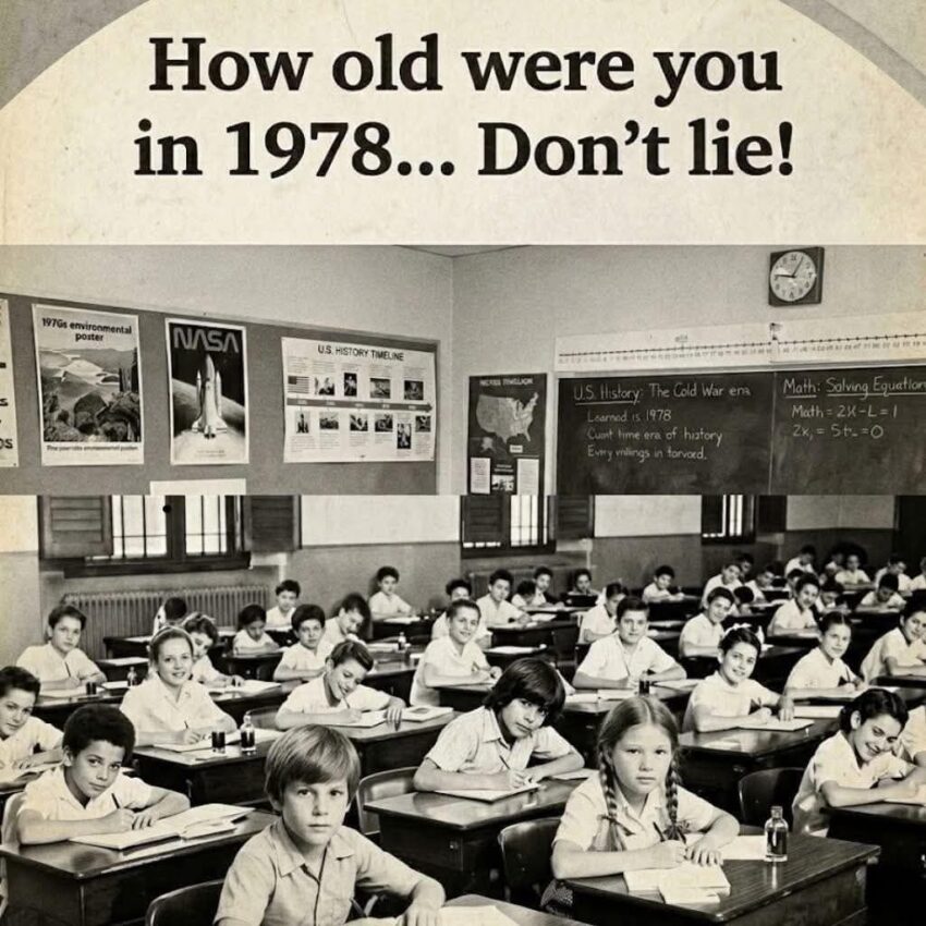- A classic nostalgia prompt asking viewers to calculate their age in 1978.