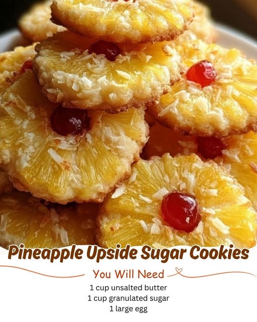 Pineapple Upside-Down Sugar Cookies 🍍🍪 are soft sugar cookies baked over a buttery brown-sugar pineapple topping, then flipped so the fruit is on top—just like a mini pineapple upside-down cake.