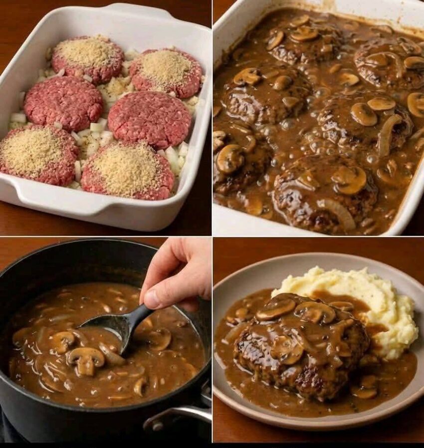 Here’s a classic Salisbury Steak recipe—juicy beef patties smothered in rich brown gravy. 🥩🍽️