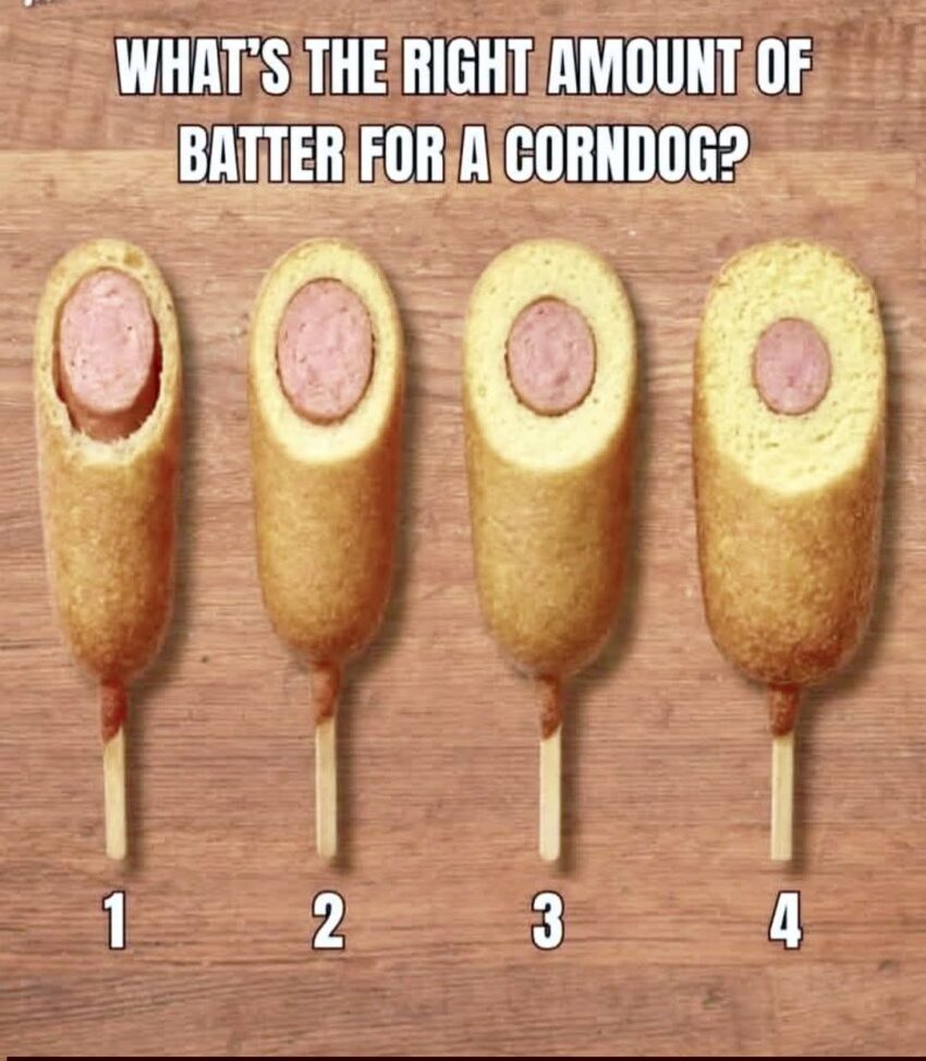The “perfect” corn dog really is a classic debate—everyone has their ideal bite! 😄 Here’s how the different batter-to-hot dog ratios usually play out: