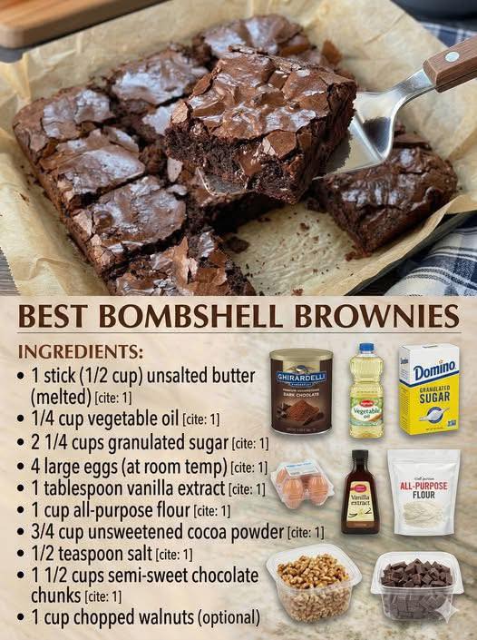 Got it! That sounds like one of those rich, indulgent brownie recipes with bold flavor and simple ingredients. Here’s a clean version of what a “Best Bombshell Brownies” recipe typically looks like: